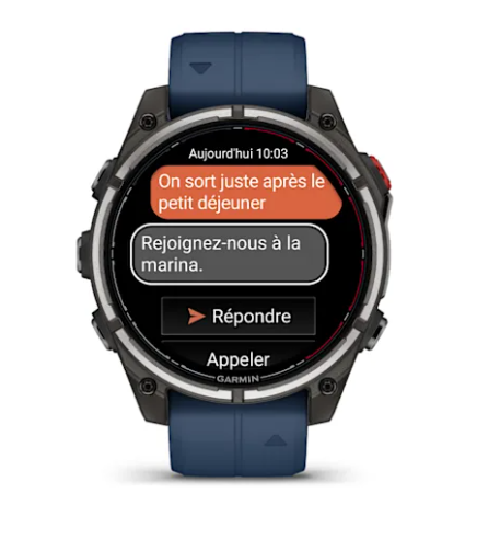 La quatix 8 Pro est la montre nautique dotée de la technologie¹ inReach® qui offre une connectivité satellite et LTE sur l'eau comme sur terre, des applications connectées au bateau et des fonctions santé et bien-être disponibles en continu.