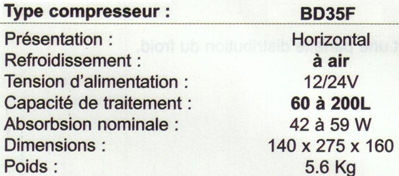 | Ils permettent de transformer votre compartiment glacière en réfrigérateur. Faciles à installer, ces kits vous permettront quand la soif se fait sentir sous l'effet de l'air et du soleil, d'apprécier le plaisir de se rafraîchir sans vous priver. Chaque kit proposé se compose : 1 groupe réfrigérant BD 35F Tuyaux de raccordement à raccords rapides 1 thermosat 1 évaporateur (5 modèles selon emplacement et volume de votre glacière ...voir tableau) 1 variateur de vitesse (voir tableau de réglage selon le volume de la glacière) |