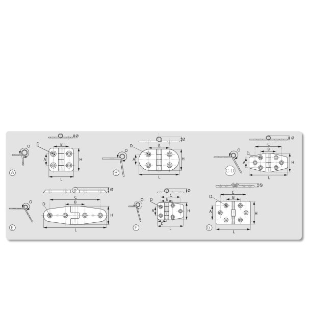 En laiton chromé épais 3 mm Fixation par vis à tête fraisée. 403674 : Ouverture (O) : 280° Dimensions :