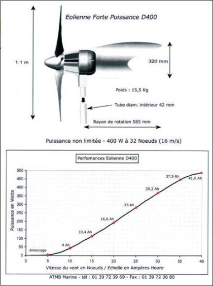 | La D400 est une éolienne de forte puissance, pour applications aussi bien marines que terrestres. Elle est extrêmement silencieuse et fonctionne sans vibrations... L?alternateur de la D400 est du type triphasé à haut rendement. Haute performance par vent faible et jusqu?à 500 Watts par vent fort. |
