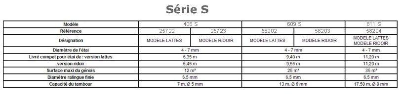Comme le 608 S, le 810 S possède un carénage guide-drosse et les lattes peuvent être ajustées pour un montage soit avec lattes seules, soit avec ridoir. La nouvelle génération est maintenant équipée de billes en Torlon (r), très résistantes, alternées avec des billes en Delrin (r), qui facilitent encore la rotation du tambour.