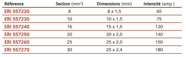 Dimensions et intensité admissible sur tableau ci-dessus.