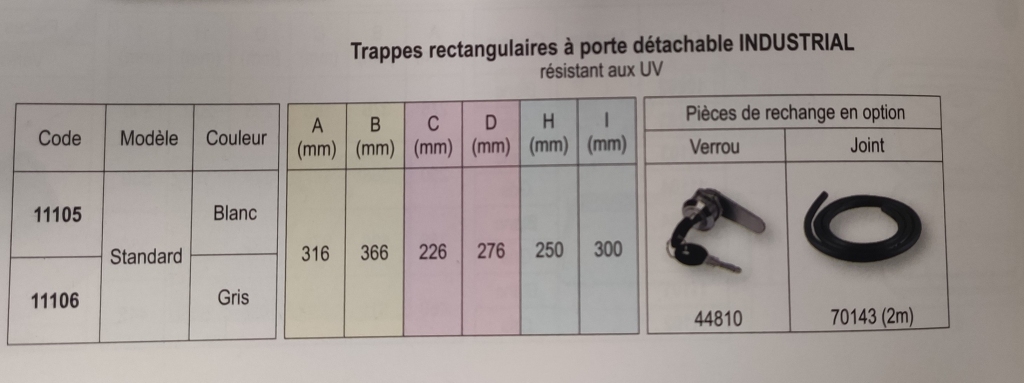 Trappe de visite rectangulaire Lalizas Fabriquée en ABS blanc résistant aux UV . 2 références : 11105 - Blanche 11106 - Grise |