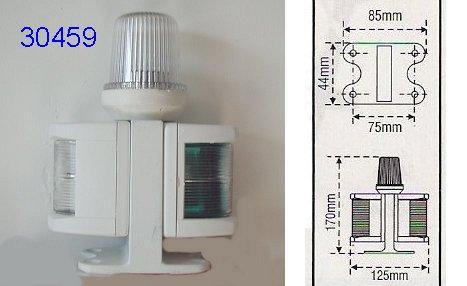 Feux vert/rouge ,blanc 360° , feu de poupe blanc 135°.