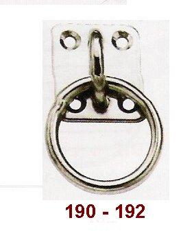 - base 35 x 30 - diamètre section pontet et anneau 5 mm - passage anneau 30 mm - référence 190 - base 40 x 35 - diamètre section pontet et anneau 6 mm - passage anneau 40 mm - référence 192