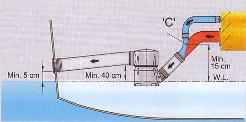 | Ce système d'échappement se loge dans un espace réduit. - Avec une entrée à 2 positions : horizontale ou à 45° vers le haut. - Sortie orientable à 360°. Voir tableau ci-dessus pour déterminer diamètre d'entrée et sortie adapté à votre installation. |