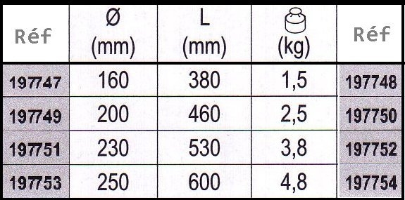 Très bonne absorption des chocs. Très grande résistance à l'environnement. Ne peut pas se dégonfler. Rangement et mise place facile. Bout traversant. Existe en blanc ou bleu. Voir dimensions sur tableau ci-dessus |