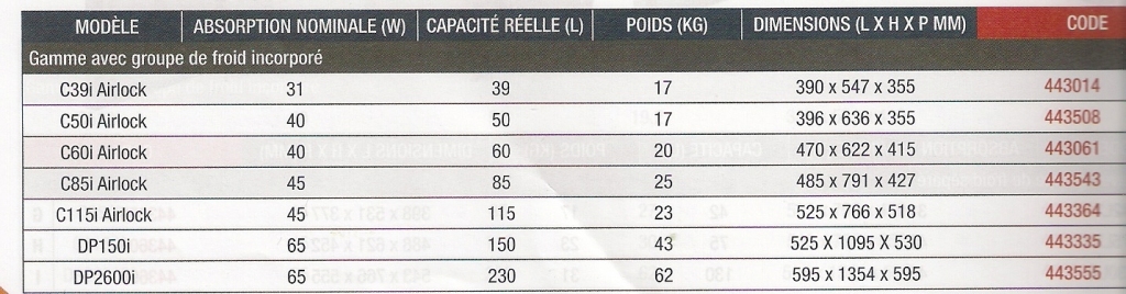 - Capacités intérieures de 40 à 230 L